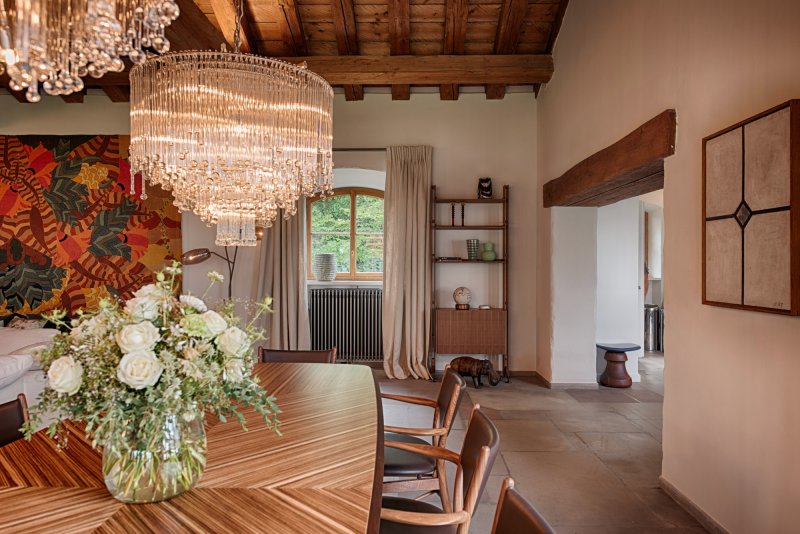 the various rooms were equipped with design and vintage furniture, including modern contrasts and individual carpentry work.